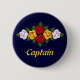 With the word 'Captain', that can be changed to any member of the crew, a traditional narrowboat roses pattern in red, white and yellow on a badge.