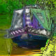 An art design of a narrowboat moored in a peaceful setting on the canal.