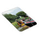 Canal boats, known in the UK as narrowboats, were originally used to transport goods around the country. They are now used mainly for leisure and attract people from all over the world to enjoy our rural countryside. These boats look very pretty with their brightly coloured cabins, traditionally blue, red or green. Flowers and castle designs also adorn the more traditional boats.
