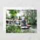 An art design of a man steering his narrowboat along the canal. Canal boats, known in the UK as narrowboats, were originally used to transport goods around the country. They are now used mainly for leisure and attract people from all over the world to enjoy our rural countryside. These boats look very pretty with their brightly coloured cabins, traditionally blue, red or green. Flowers and castle designs also adorn the more traditional boats.