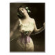 Vintage photograph of a young woman tightening the strings of her corset so she has an incredibly small waist