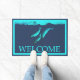 Features three narwhals swimming under the Arctic ice along with text reading, "WELCOME."