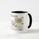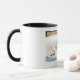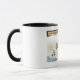Coffee mug with NASCAR cartoon by Mike Smith. Cartoon depicts a hard-core racing fan keeping up with all the news about his favourite sport by using an iPod, cellphone, TV and laptop computer while on vacation.