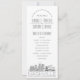 A deco skyline-themed wedding program for a wedding taking place in the beautiful city of Nashville. This wedding program card features a stylised illustration of the city's unique skyline with its name underneath. This is resting underneath your wedding day information in a matching open-lined style.