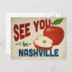 A charming Nashville Tennessee vintage travel postcard featuring a lovely red apple, along with fun retro style text that says, "See you in Nashville"