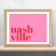 A stylish and contemporary Nashville poster featuring bold red lowercase typography split across two lines on a soft pink background. Perfect as a travel keepsake, home décor piece, or gift for fans of Nashville, typography, and minimalist design.