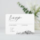 Classic minimalist script wedding RSVP enclosure card personalised with your information. Enter the Zazzle design tool for further customisation such as text placement or to add a fourth meal option. Be sure to compare the different paper types to select your favourite texture and check the full collection to purchase matching mailing envelopes.