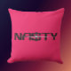 Add bold attitude to your space with this NASTY statement throw pillow. Featuring clean, modern typography with a striking slash-through detail, this design transforms everyday décor into fearless self-expression.