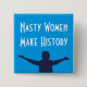 Blue Square Button with a beautiful silhouette of Hillary with her arms wide open towards the words "Nasty Women Make History." A must have for any Woman and especially for any Hillary fan.