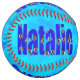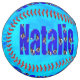 Pictured on a blue is a Natalie name logo made with Guinea Pigs