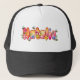 Calling all Natalie! This adorable trucker-style baseball cap features a fun, personalized graphic on the front panel. The name "Natalie" is spelled out in bubbly, sunset-colored letters decorated with wildflowers and cute honeybees.