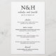 Modern wedding menu (printed on thin printer paper) featuring a simple and minimal black and white design with your monogram in a bold font along with your names in an elegant handwriting script.