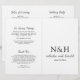 Modern folded wedding program (printed on medium grade paper and comes unfolded) featuring a simple and minimal black and white design with your monogram in a bold font along with your names in an elegant handwriting script and your wedding date.
