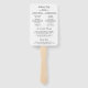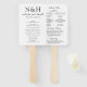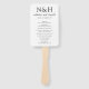 Modern wedding program hand fan featuring a simple and minimal black and white design with your monogram in a bold font along with your names in an elegant handwriting script. Below is your order of ceremony and the back has your wedding party, "in loving memory" message and thank you message.