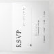Modern all in one tri-fold wedding invitation featuring a simple and minimal black and white design with your monogram in a bold font along with your names in an elegant handwriting script over your favourite photo. The inside left panel has your additional details and optional QR code (if you prefer, you may remove the QR code in the design editing tool). The right panel has your RSVP card. The front cover and back each have a photo, for a total of three pictures.
