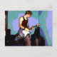 Abstract colour blocked boy and his guitar. In blue, sea green, and multi colour.
