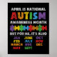 National Autism Awerness Month Autistic Kids Aware Poster
