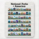 Includes an illustration of all parks: Acadia, American Samoa, Arches, Badlands, Big Bend, Biscayne, Black Canyon of the Gunnison, Bryce Canyon, Canyonlands, Capitol Reef, Carlsbad Caverns, Channel Islands, Congaree, Crater Lake, Cuyahoga Valley, Death Valley, Denali, Dry Tortugas, Everglades, Gates of the Arctic, Glacier, Glacier Bay, Grand Canyon, Grand Teton, Great Basin, Great Sand Dunes, Great Smoky Mountains, Guadalupe Mountains, Haleakalā, Hawaiʻi Volcanoes, Hot Springs, Indiana Dunes, Isle Royale, Joshua Tree, Katmai, Kenai Fjords, Kings Canyon, Kobuk Valley, Lake Clark, Lassen Volcanic, Mammoth Cave, Mesa Verde, Mount Rainier, North Cascades, Olympic, Petrified Forest, Pinnacles, Redwood, Rocky Mountain, Saguaro, Sequoia, Shenandoah, Theodore Roosevelt, Virgin Islands, Voyageurs, White Sands, Wind Cave, Wrangell-St. Elias, Yellowstone, Yosemite, Zion.
