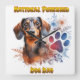 A colourful illustration celebrating National Purebred Dog Day featuring a charming dachshund surrounded by floral designs and paw prints.