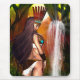 This design features A beautiful native American female beauty posing in a stunning forest environment with a calming waterfall.