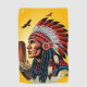 Native American Chief Portrait looking far away in a wild desert Landscape on Sunset Background, Original Vector Illustration Copyright BluedarkArt TheChameleonArt