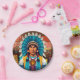 Proud Native American Chief Powerful Portrait with Dream Catchers and Mountains on Background Vector Logo Illustration Copyright BluedarkArt TheChameleonArt.