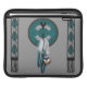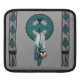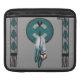 Great ipad sleeve from Rickshaw with a grey background and accented with graphics of native American Indian bead work in grey and torqouise bead work.