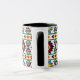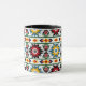 Native American, Aztec design mug features a vibrant starburst pattern. Colours are dark green, blue, black, rust, orange, yellow and white. It's bright and colourful and will bring a big splash of colour and energy to your day! It's shown with a black inside and handle, however there are other types of mugs available to choose from.