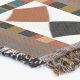A quality printed throw has its advantages. This is a much finer weave throw than its loopier cousins, and though lighter, it is worth the investment for custom room accessorizing. The back is much prettier than the typical brown, and the fringe on the long sides very vivid, the selvage nicely done. Before photographing, I washed the throw in cold water, delicate, with a thicker woven throw the same size. On tumble dry low, this throw was dry in half the time as the other. This is a very practical quality if you use throws for furniture covers or to wrap up in frequently. The sleekness of the fabric makes it a great layer for accenting or protecting without the feeling of sitting on too much stuff. Perfect for napping or when you feel a light chill coming on. The color printing is beautiful and on this fabric, matched the design and color of my Photoshop image. This is an advantage for blending room fabrics and colors. The fringe on the short sides prints the colors from the design image and therefore varies from the side fringe. I streaked a white fractal line through the plaid pattern to give the illusion of weaving. This printed as crisp as an illusory thread, and put some white in the short side fringe, showing another advantage of print vs loomed- for artistic purposes, line lines, detail, and color integrity can be planned and preserved. My loomed throws have color limitations and more of a needlepoint texture. Print throws reproduce an exact image. The throw felt a little stiff straight out of the package, but this went away in the first delicate wash. Of course I searched the wash water for ink or bleeding and there was none.