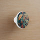 This abstract ethnic pattern cabinet knob features swirls of feathers, flowers, and paisley like shapes n dusty teal, terra cotta, rust, deep blue green, and cream. This vintage style print would fit a variety of decor colours and styles, with a pattern with bold swirls in muted tones.