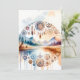 Vibrant watercolor artwork featuring a serene landscape with mountains and a calm lake at sunrise. In the foreground, include a traditional teepee and a small cabin, surrounded by lush trees. The scene with intricate tribal patterns, including dreamcatchers, feathers, and geometric shapes, incorporating warm earth tones and soft watercolor effects to enhance the dreamy atmosphere. The overall look evokes a sense of harmony with nature and indigenous culture.