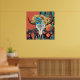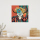 The Native American style art print features a buffalo skull with colourful flowers feathers and a red background.