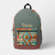 Cool Native American Indian Style print on the front pocket and sides of this backpack. Background on front goes from a rust colour up through to an olive green, which coordinates with the print. Monogram with your name and you have a stunning backpack!