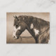 Beautifully painted portrait of a Native American chestnut pinto horse decorated with war paint symbols, feathers, and braided leather reins, in monochrome sepia tones to created an old or aged photo effect.