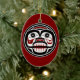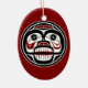 Decorate your tree with this ornament with a beautiful Haida Weeping Skull from British Columbia, Canada. The background is a deep red.