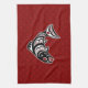 Gift your friend this towel with a beautiful Haida Salmon from British Columbia, Canada. The background is a deep red.