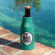 Keep your drink cold with this bottle cooler with a beautiful Kaigani Thunderbird from British Columbia, Canada. The background is green. The text is in white.