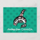 Send your family this postcard with a beautiful Haida Killer Whale from British Columbia, Canada. The background is green.