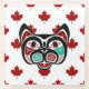 Serve your drinks on these cool glass coasters with a cute Haida Kitty from British Columbia, Canada. The background has a maple leaf pattern in red.
