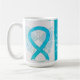 Native American Reparations uses a blue turquoise awareness ribbon to show support for its awareness. This custom mug features blue turquoise awareness ribbon guardian angel art paintings with the message "I Hope and Support Native American Reparations Awareness!" The custom blue turquoise awareness guardian angel ribbon art picture coffee cups or mugs can be customised with personalised messages to make great cause mugs for awareness fundraisers, awareness cup gifts, or other special events or cause support occasions. Make your own customised words for a personal message of hope and support to share!