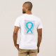 Native American Reparations awareness uses a blue turquoise ribbon for its cause awareness. The shirt art features a blue turquoise awareness ribbon angel painting. The awareness angel t-shirt message notes "Native American Reparations Awareness". There is a large image on the back of the shirt and a smaller picture on the front. The blue turquoise awareness angel ribbon art apparel can be customised with personalised messages to make great cause event clothing for fundraiser shirts, group team walk shirts, awareness t-shirt gifts, or other special cause events occasions for merchandise to help increase this cause's awareness in public for society's help in creating help & cause change.