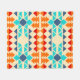 Native american seamless pattern of rhombus and triangle combinations in full colour, blue, light blue, orange, red orange, cream background.
