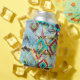 Native American tribal sublimation mix pattern with vibrant turquoise, yellow, and red colours against diluted, worn, grunge turquoise wood background.