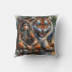 Native American Woman With Tiger by River at Dusk Cushion