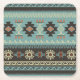 Native American / Tribal blanket inspired pattern features geometric designs. Palette: brown, orange, sky blue and cream white.