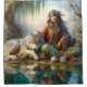 Beneath the tranquil trees, a native Indian girl shares a peaceful connection with her wolf companion. Sitting beside a shimmering water surface, they reflect a bond forged in nature's embrace, harmonising with the beauty around them.