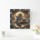 Native hearth warmth, willow boughs gentle peace. Timepiece shows tranquil moment. Witness the deep connection between a young, beautiful Native Indian woman and a majestic grey wolf, their stillness a symphony of nature's wisdom. Gentle willow leaves rustle in the soft breeze, while the comforting crackle of a campfire creates a warm sanctuary. A peaceful stream reflects the ethereal beauty of their shared moment, carrying the faint scent of wildflowers. Feel the tranquil magic of a moment beyond time, and craft your own vision with our Design Tool. Personalise the numerals and hands to create a unique haven, a sanctuary of peace in any space.
