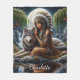 Beneath the luminous glow of a full moon, a native Indian woman sits gracefully beside a majestic wolf, their bond evident in the tranquillity of the moment. Surrounded by lush trees and gentle waters, they embody the spirit of harmony within nature.