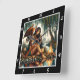 Hear native secrets, eagle's glance moon's glow. This timepiece reveals the mysteries of the night. Step into a moonlit glade of tranquillity with this exquisite timepiece, where the wisdom keeper art reveals every detail. Witness the deep bond between a young, beautiful Native Indian woman and a majestic American eagle, their presence a silent testament to nature's timeless knowledge. Willow branches sway in the gentle night breeze, while the soft glow of a campfire casts a comforting light on their rocky sanctuary. A peaceful stream reflects the ethereal beauty of their shared moment, carrying the faint scent of night-blooming flowers. Feel the quiet magic of a moment beyond time, and craft your own vision with our Design Tool. Personalise the numerals and hands to create a unique haven, a sanctuary of peace in any space.