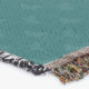 A quality printed throw has its advantages. This is a much finer weave throw than its loopier cousins, and though lighter, it is worth the investment for custom room accessorizing. The back is much prettier than the typical brown, and the fringe on the long sides very vivid, the selvage nicely done. Before photographing, I washed the throw in cold water, delicate, with a thicker woven throw the same size. On tumble dry low, this throw was dry in half the time as the other. This is a very practical quality if you use throws for furniture covers or to wrap up in frequently. The sleekness of the fabric makes it a great layer for accenting or protecting without the feeling of sitting on too much stuff. Perfect for napping or when you feel a light chill coming on. The color printing is beautiful and on this fabric, matched the design and color of my Photoshop image. This is an advantage for blending room fabrics and colors. The fringe on the short sides prints the colors from the design image and therefore varies from the side fringe. I streaked a white fractal line through the plaid pattern to give the illusion of weaving. This printed as crisp as an illusory thread, and put some white in the short side fringe, showing another advantage of print vs loomed- for artistic purposes, line lines, detail, and color integrity can be planned and preserved. My loomed throws have color limitations and more of a needlepoint texture. Print throws reproduce an exact image. The throw felt a little stiff straight out of the package, but this went away in the first delicate wash. Of course I searched the wash water for ink or bleeding and there was none.